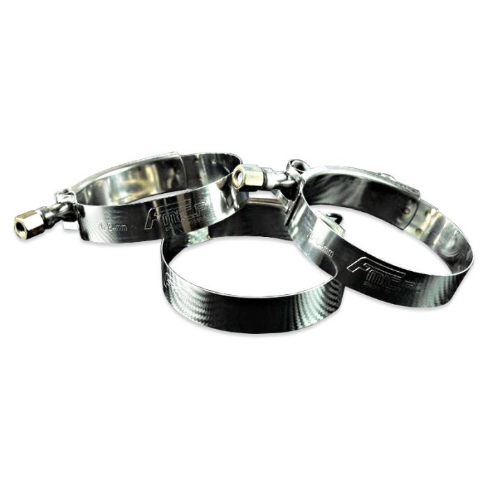 Exceptionally durable and flexible clamps made 100% of stainless band, attached by means of galvanized screw and long nut. Their quality overshadows all other, similar products that are available in shops and on the eBay auction website. Stainless, flexible band of width equal to 19 mm and thickness of 0.6 mm guarantees proper installation of silicone hoses on the pipes, while in the same time maintaining a desired distribution of force on the entire perimeter after its attachment. Additionally, soft ends of the band make it virtually impossible to damage the silicone hoses in any way. The whole construction is secured with a nut, the length of which is equal to 10 mm. The remarkable size of the component in question significantly reduces the risk of damaging the thread while tightening the nut. The clamp is signed with the FMIC.EU logo. It is a guarantee of quality, longevity, and additionally indicates its vehicle tuning-oriented applications.