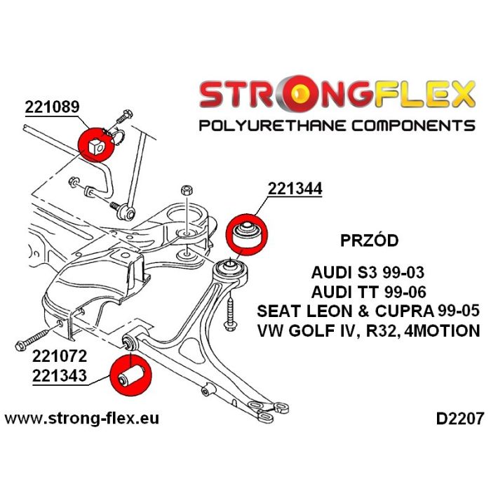 - D2207 Front suspension Polyurethane - cast wishbones - Audi S3 TT Seat Leon & Cupra VW Golf R32