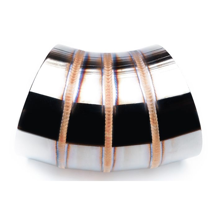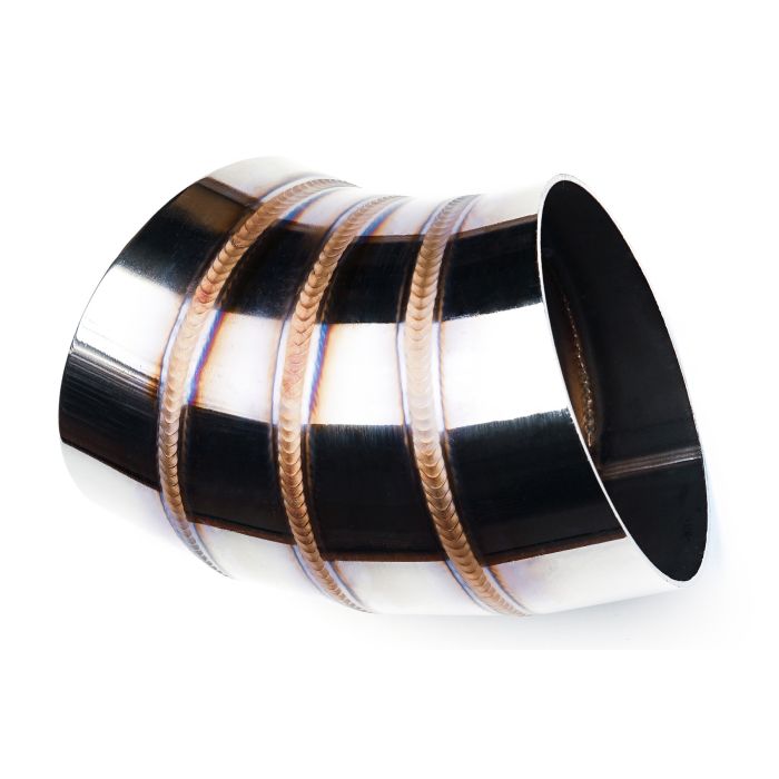 Stainless steel elbow from the "welding porn" series with a diameter of 51mm and 45 degrees. Artistically, hand-welded in an argon chamberare very satysfying with their appearance - beautiful, colorful welds, as well as extremely precise workmanship. Stainless "slices" cut on a CNC machine at an angle of 11.25 are perfectly aligned with each other - without burrs, faults, etc. Thanks to that our elbows create ideal passage. The high-gloss finish combined with the colorful welds guarantee an amazing visual effect. The elbows are made of 304 stainless steel - they can be used both in the exhaust system and in the intake system.
