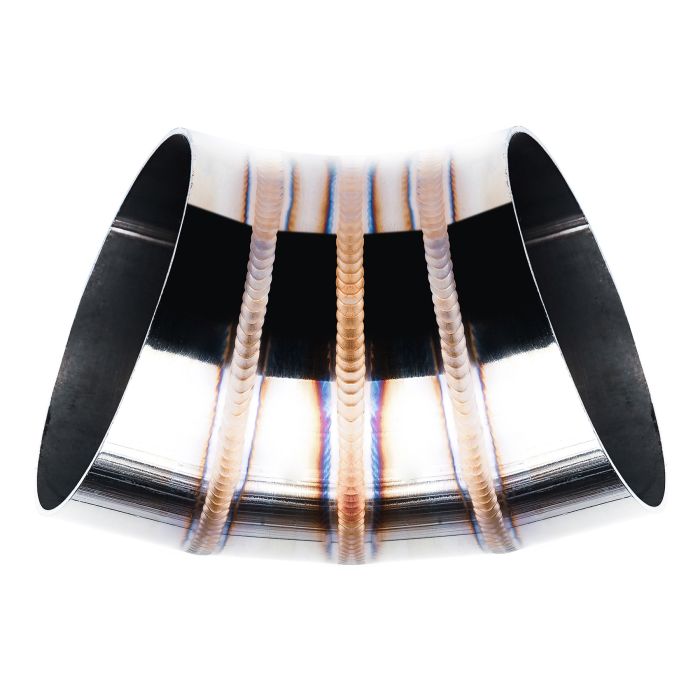 Stainless steel elbow from the "welding porn" series with a diameter of 60mm and 45 degrees. Artistically, hand-welded in an argon chamberare very satysfying with their appearance - beautiful, colorful welds, as well as extremely precise workmanship. Stainless "slices" cut on a CNC machine at an angle of 11.25 are perfectly aligned with each other - without burrs, faults, etc. Thanks to that our elbows create ideal passage. The high-gloss finish combined with the colorful welds guarantee an amazing visual effect. The elbows are made of 304 stainless steel - they can be used both in the exhaust system and in the intake system.