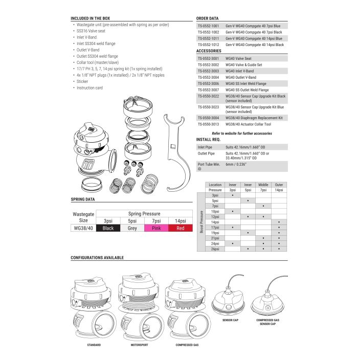 The GenV WG40 CompGate40 External Wastegate is a Motorsport-proven, cost-effective external wastegate – The Highest Flowing Wastegate of its kind. The GenV provides extensive user configuration, world-leading extended thermal performance, fatigue resistance and best-in-class flow performance for optimum control and longevity.
