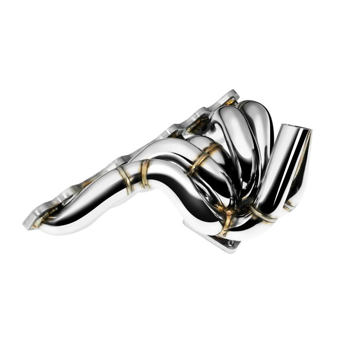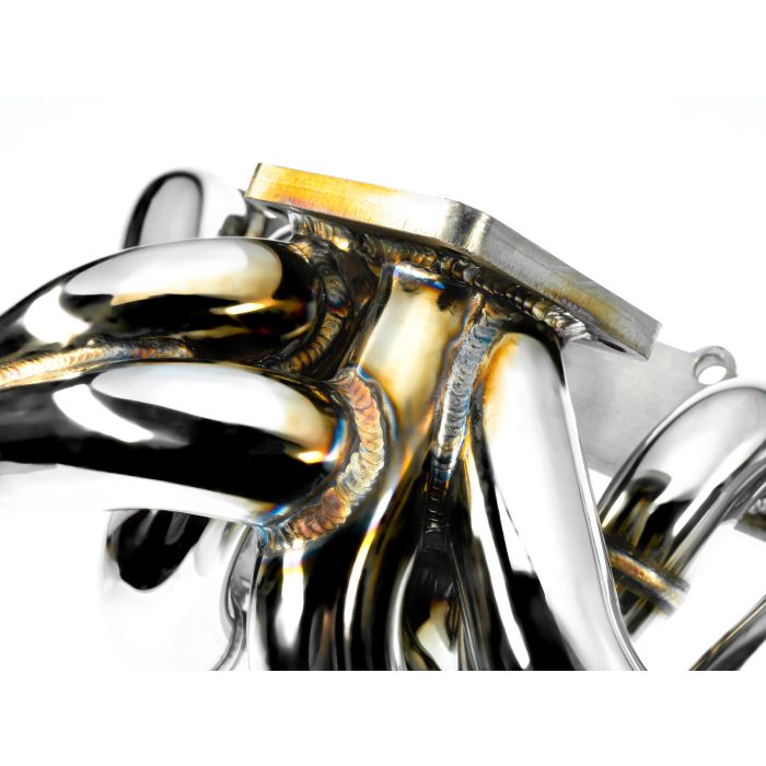 FMIC.Pro exhaust manifold is made of 321 stainless steel and thanks to titanium stabilization offers much better characteristics than similar manifolds made of 304 grade steel. Reduced creep of the material (deformation) at high temperatures and much higher resistance to aggressive exhaust environments significantly reduce the risk of cracking or corrosion. Additionally, the use of bent runners reduced the number of welded elements which also has a significant impact on manifold durability. Thanks to a perfect fit of runner diameters to the openings of both flanges, the flow of exhaust gases is perfectly maintained without any restrictions. Perfectly made manifold merge collector guarantees fast spool of the turbocharger, additionally helped by Twin Scroll construction. The manifold is prepared for use with both one or two external wastegate valves.
