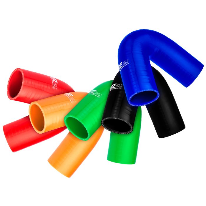 FMIC.EU silicone connectors are a professional product made from highest grade of silicone with multi-layer reinforcement. Years of research and development and working with the best drifters and drag racers across Europe resulted in silicone connectors able to withstand tremendous pressures generated in the intake systems. Additional resistance to coolant, fuel fumes, grease and engine oil extends the use of our silicones to cooling systems, crankcase vents and many more. All FMIC.EU silicones are reinforced with 5 or 6 layers (depending on the diameter) of our unique pattern, developed in-house braid that despite being very strong provides high flexibility.