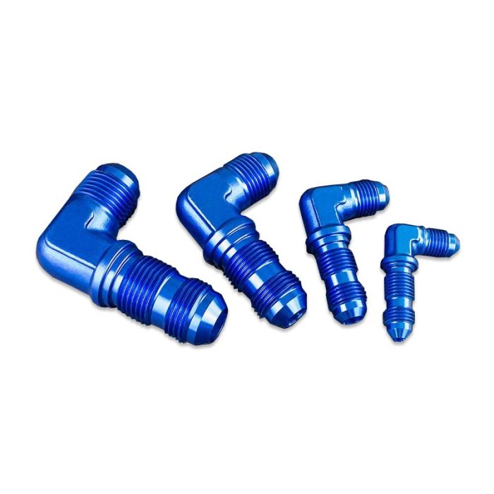 Adapter AN6 JIC bulkhead 90' male fuel hose fitting Blue