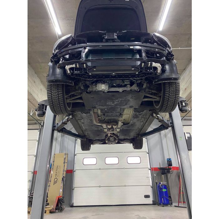 Aftermarket intercooler kit dedicated to Kia Stinger 2.0T. Complete intercooler kit includes high performance FMIC.EU intercooler with our new type of alternately arranged core, set of silicone connectors and elbows, set of aluminum connectors and clamps. Depending on how you install the intercooler to the frame of the car some elbows may need to be shortened.