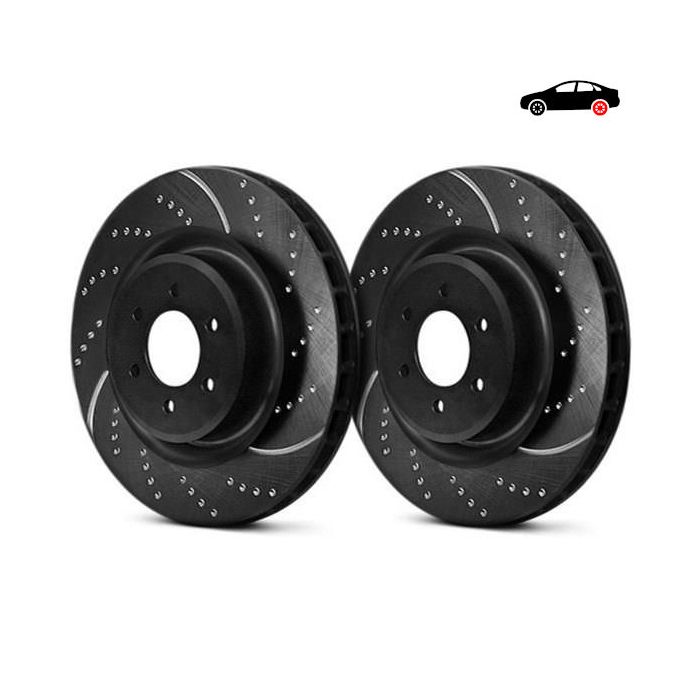 GD-series notched and drilled brake discs are the best choice to provide drivers with safe braking on the road and on tracks and special stages in powerful sports and tuned cars. The widened curved gap increases the flow of cool air, resulting in lower pad and brake disc temperatures, while carrying away dust, dirt and hot gases better than traditionally notched. They are manufactured from high-quality gray cast iron, sized and shaped to OEM factory dimensions, using the strictest quality controls, and machined to fall within extremely tight tolerances of less than 0.05mm. All casting suppliers to EBC are ISO certified to meet the highest requirements and have been approved by Germany's TUV.