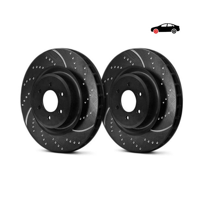 GD-series notched and drilled brake discs are the best choice to provide drivers with safe braking on the road and on tracks and special stages in powerful sports and tuned cars. The widened curved gap increases the flow of cool air, resulting in lower pad and brake disc temperatures, while carrying away dust, dirt and hot gases better than traditionally notched. They are manufactured from high-quality gray cast iron, sized and shaped to OEM factory dimensions, using the strictest quality controls, and machined to fall within extremely tight tolerances of less than 0.05mm. All casting suppliers to EBC are ISO certified to meet the highest requirements and have been approved by Germany's TUV.
