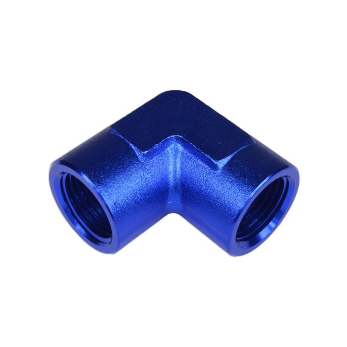 Nippel 90' 1/4"NPT. Hergestellt aus hochwertigem Aluminium auf einer CNC-Maschine, blau oder schwarz. Zusammen mit unseren AN-Klemmen ist es eine dichte und ästhetische Verbindung von Drähten. Es ist perfekt für den Motorsport beim Aufbau des Kraftstoffsystems , Schmierung usw.