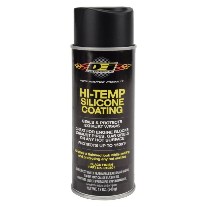 The High Temperature (HT) Silicone Coating provides lasting protection for any hot surface up to 1500 degrees. DEI recommend the use of this coating with their exhaust wrap because it seals the material and provides lasting protection from oil, dirt and road grime. Don't limit the use to exhaust header wrap, this products works well on headers, blocks, starters and even on your grill at home. HT Silicone Coating is VOC (Volatile Organic Compounds) compliant in all 50 states. For use with all DEI exhaust wraps, HT Silicone Coating penetrates, seals and protects as well as helping to extend the lifespan of all DEI exhaust wraps. See special instructions below for best adhesion on Titanium exhaust wrap products.