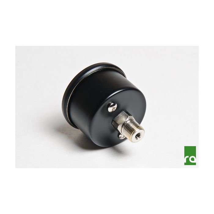 This high-accuracy fuel pressure gauge is suitable for all fueling applications. It features an acrylic lens with a silicone filled dial that reads from 0 to 100psi (0 to 6.9 BAR) with +/- 2% accuracy. The silicone fluid prevents the needle from vibrating for easy pressure readings. The internal bubble is normal. Rugged stainless 1-5/8" OD steel case (1-3/4" OD bezel) with nickel plated male 1/8" NPT fitting. Available with black bezel and housing only.