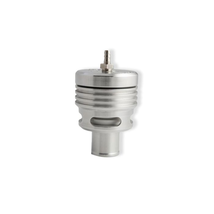 Professional two-piston valve. Thanks to incorporating two synchronized springs, no maintenance or regulation of the pressure to around 2.5 bar is needed after its installation. The body of the valve is made out of PA06 polished aluminum and its diameter is equal to 60 mm. The diameter of the steering piston is 40 mm. The second piston, the main role of which is to ensure tightness is made out of Teflon. Due to the fact it serves its role perfectly, ensuring satisfactory tightness and reliability. Inlet diameter: 25mm (or 28mm, 30mm, 32mm, 35mm). While changing gears, the valve makes a loud, characteristic noise. It is perfect to use as a part of the so-called soft turbo systems and with powerful turbochargers.