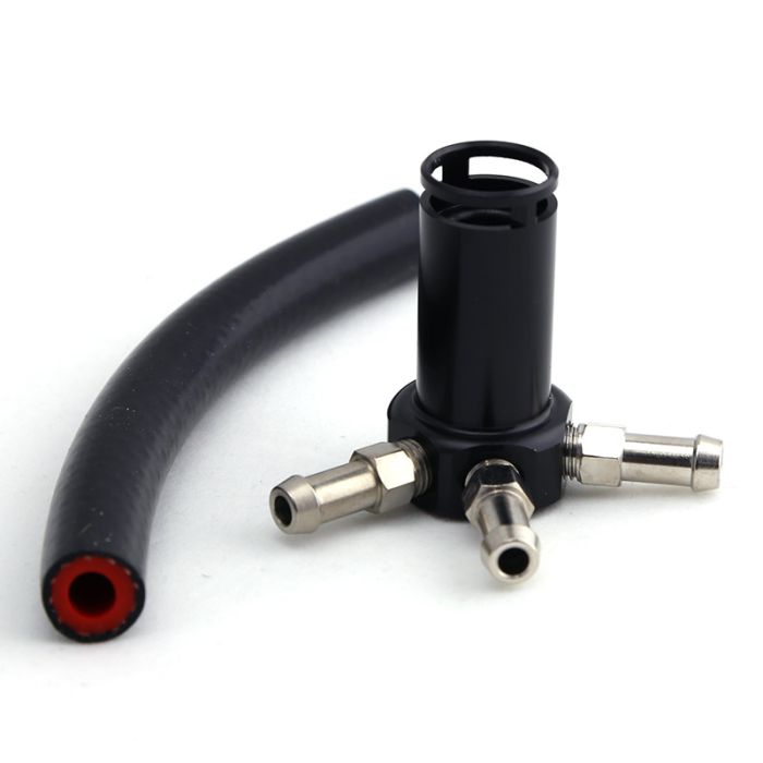 This BRA attaches to the PCV barb right behind the throttle body on the intake manifold, and provides a pressure/vacuum source to two ports, while still allowing full, uninterrupted operation of the PCV system. The two ports allow users to run a wide variety of accessories such as boost gauges and blow-off valves, with the responsiveness, versatility and reliability that a traditional vacuum-operated system offers.