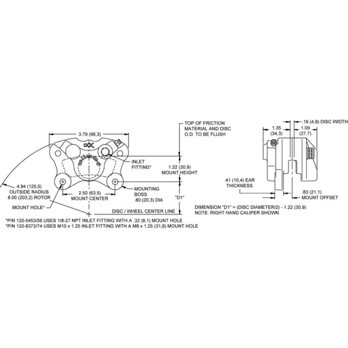 The PS-1 Caliper is compact, lightweight (.93 pounds) and combines the strength of cast aluminum construction with a sleek low profile design. This caliper utilizes two stainless steel deep cup pistons to minimize heat transfer from the .30” thick pad to the brake fluid while employing high temperature square piston seals to control piston retraction. Internal crossover brake fluid passages eliminate the use of external crossover tubes. The PS-1 fits rotors with diameters ranging from 6.00” to 9.00”, thickness sizes from .15” to .20”.